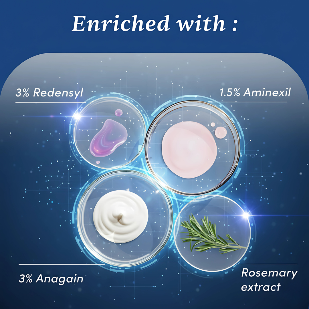 Enriched with Redensyl, Aminexil, Anagain, Procapil and Baicapil, this mix is Clinically Tested to boost growth.