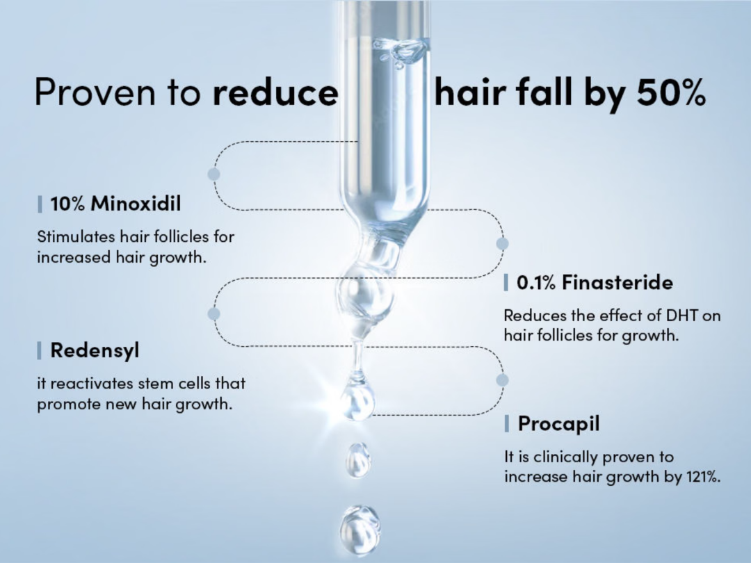 Minoxidil stimulates hair growth by widening blood vessels & delivering more oxygen-rich blood to the hair follicles. It increases the size of hair follicles for strong & thick hair growth.