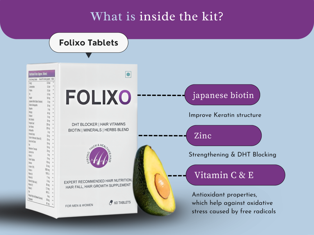 > Folixo Hair Tablet: Combat hair thinning, promote growth.This is example text. Click here to edit it.