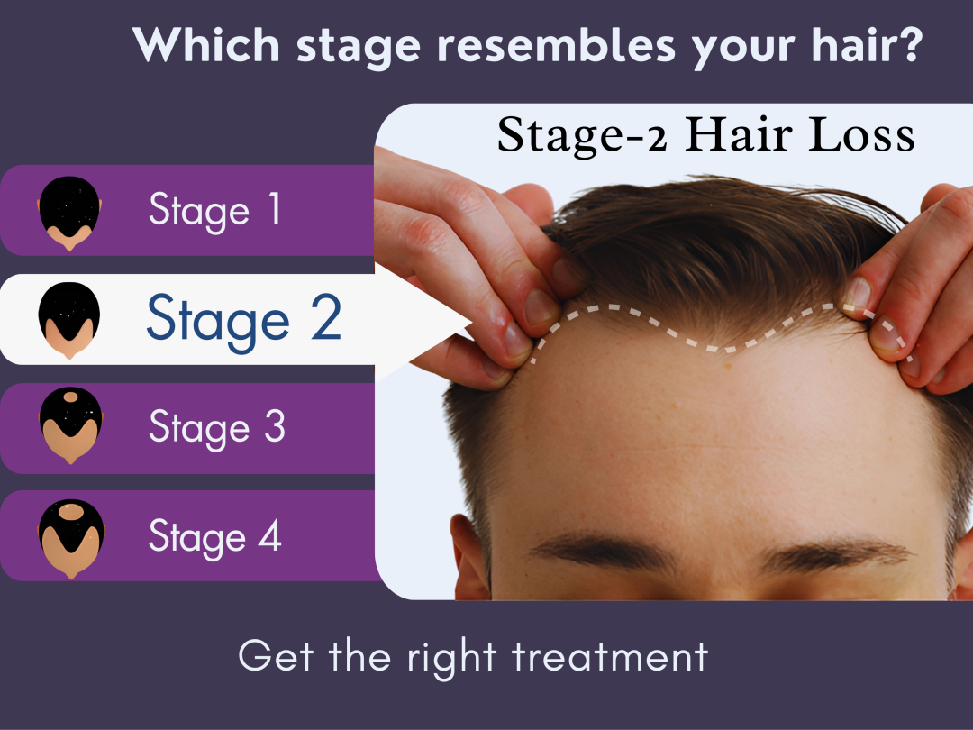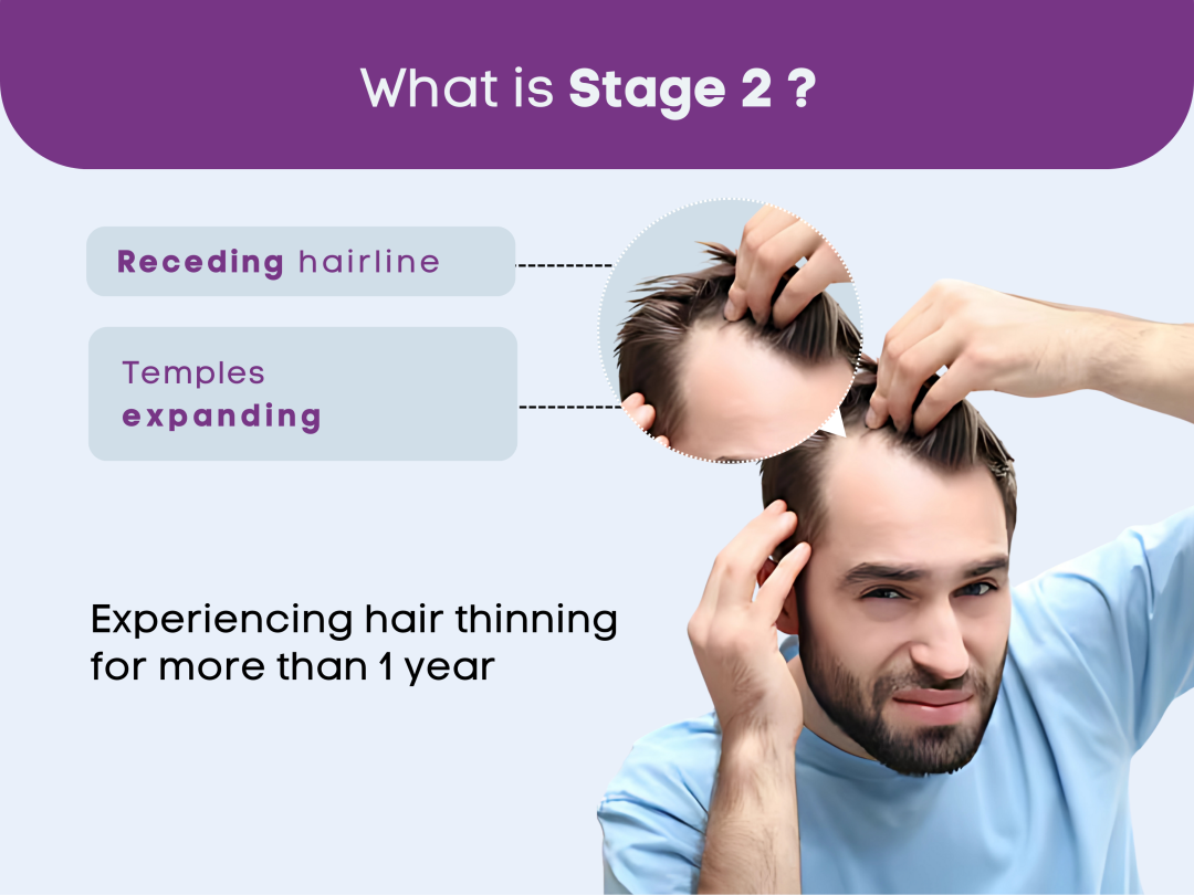 If you notice hair thinning at corners of forehead or reducing volume overall/at crown (shown in Image 2) , use our Stage 2 Kit