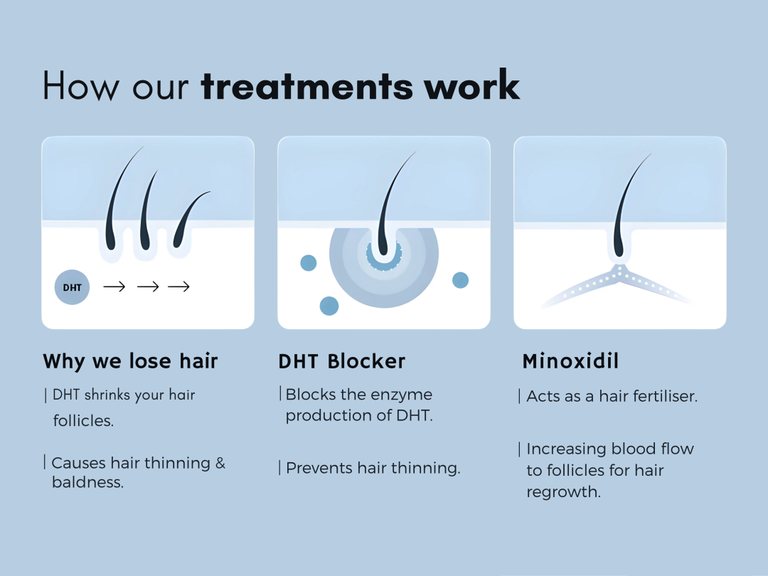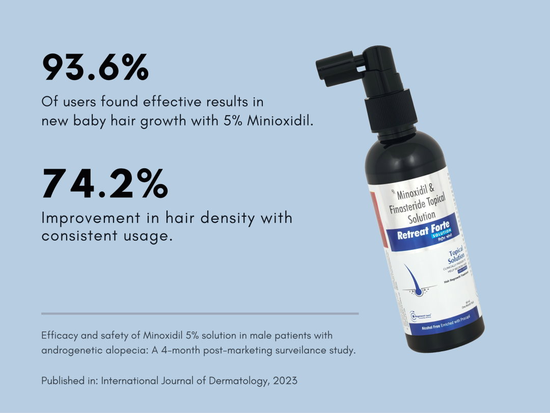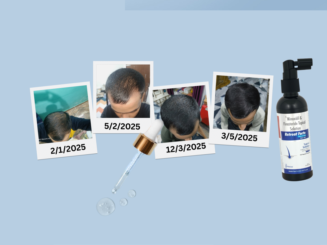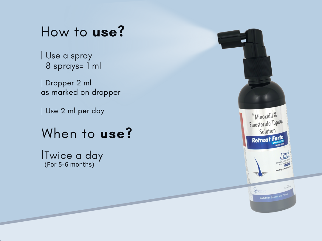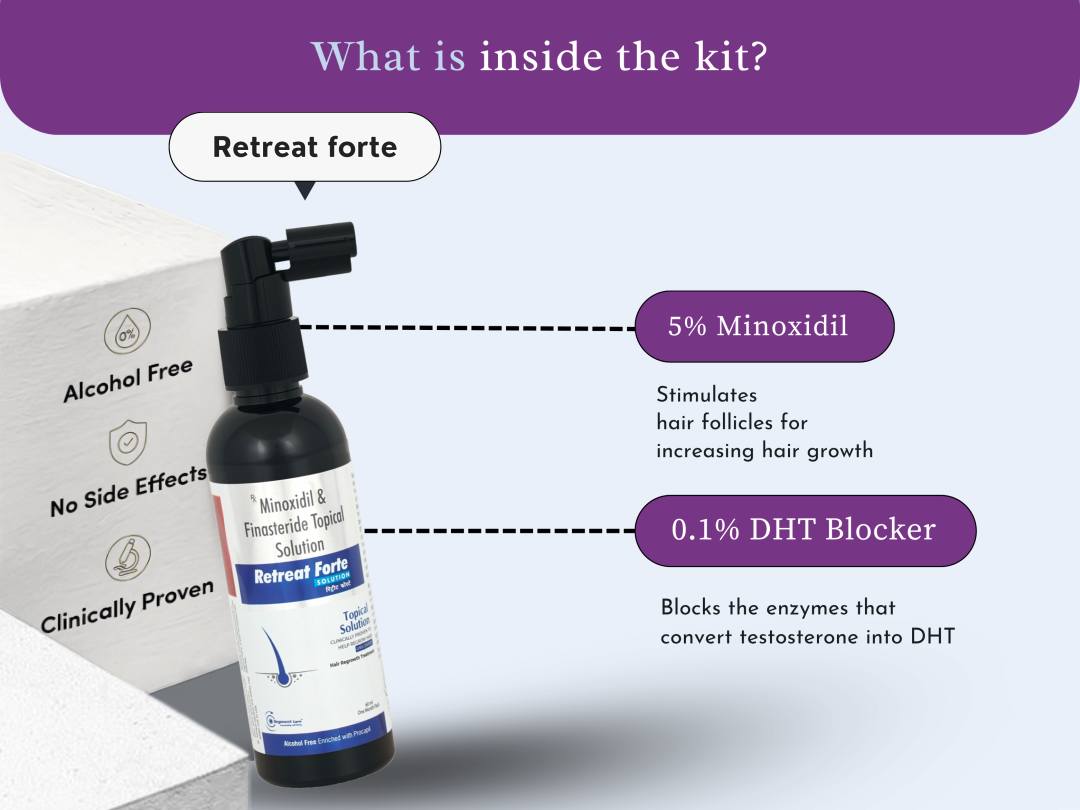 DHT shrinks hair follicles, causing thinning. Retreat Forte helps reduce DHT and improves scalp blood flow.
